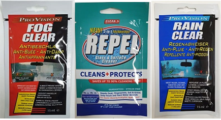 - Vrećica s maramicom natopljenom impregnatom Rain Clear – impregnat koji kombinira učinak nevidljivog brisača i izvrsne zaštite staklenih površina. Štiti od stvaranja vodene pare na staklu, ogledalima i zrcalima.