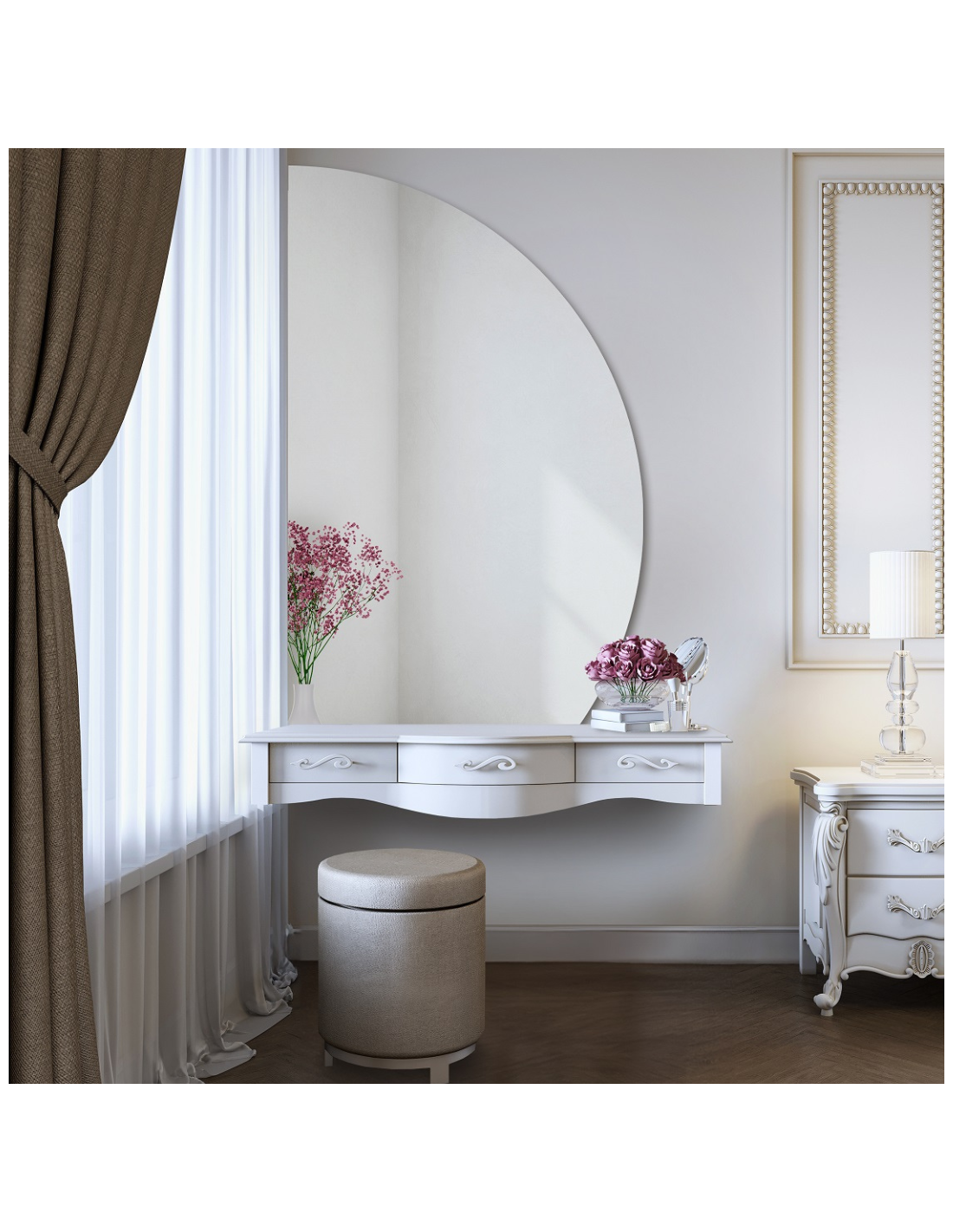 Standardna rasvjeta stvara aureolu oko ogledala. U slučaju odabira LED kućišta, svjetlo je smješteno u posebno kućište, što znači da ne stvara efekt aureole oko površine ogledala. Pri odabiru rasvjete za svakodnevno šminkanje nije moguće odabrati dodatak iz ove kategorije.