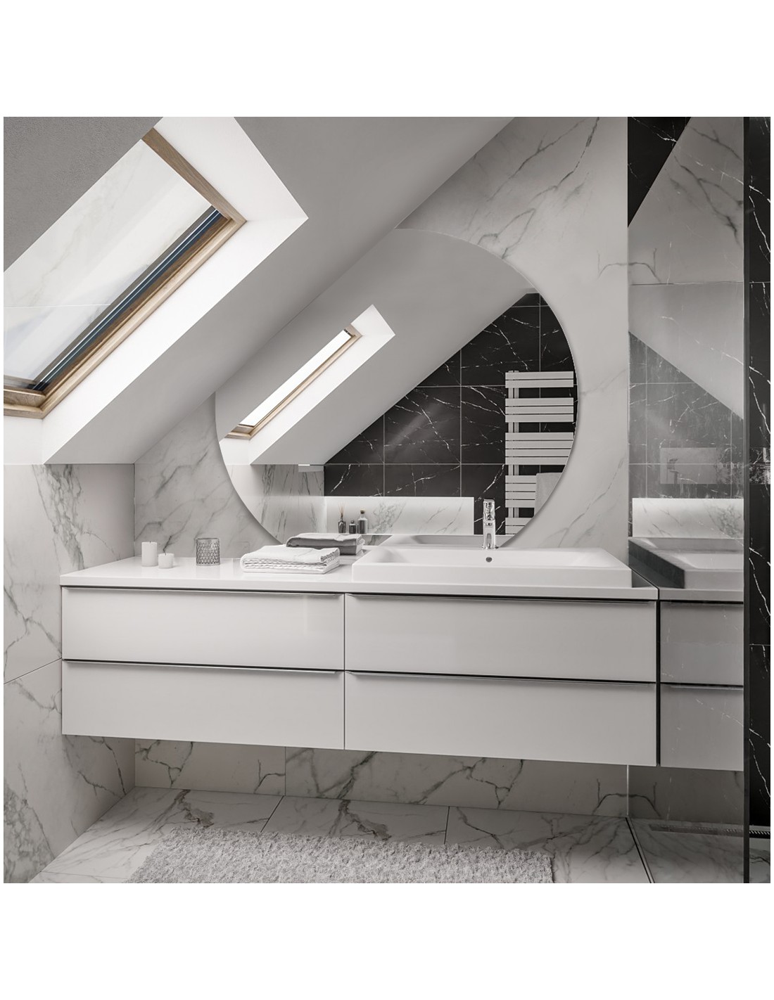 Podloga protiv pare ima neovisni prekidač koji vam omogućuje uključivanje podloge u bilo kojem trenutku, bez obzira na osvjetljenje ogledala. Grijaći element nalazi se u središnjem dijelu ogledala, učinkovito eliminirajući paru, osiguravajući čistu refleksiju. Iz tehničkih razloga, otirač se ne može postaviti preko cijele površine ogledala.
