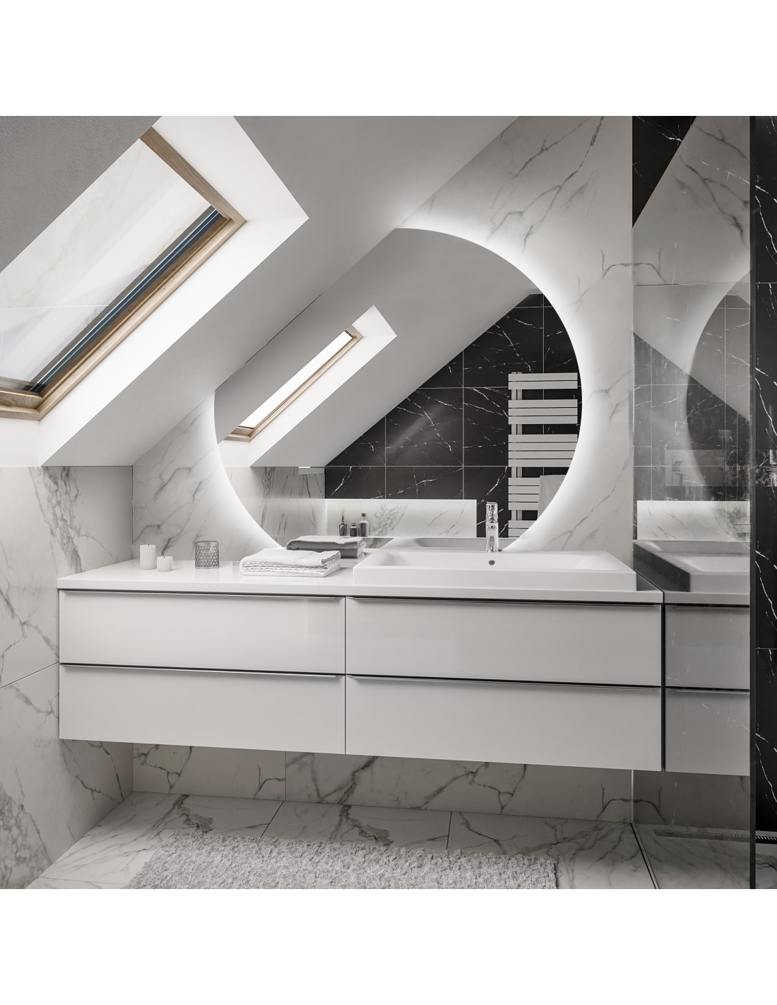 LED osvjetljenje se uključuje kada dodirnete površinu ogledala na prekidaču. Prekidač stalno svijetli - bez obzira na osvjetljenje ogledala. Prekidač s pozadinskim osvjetljenjem olakšava pronalaženje, čak iu mraku.