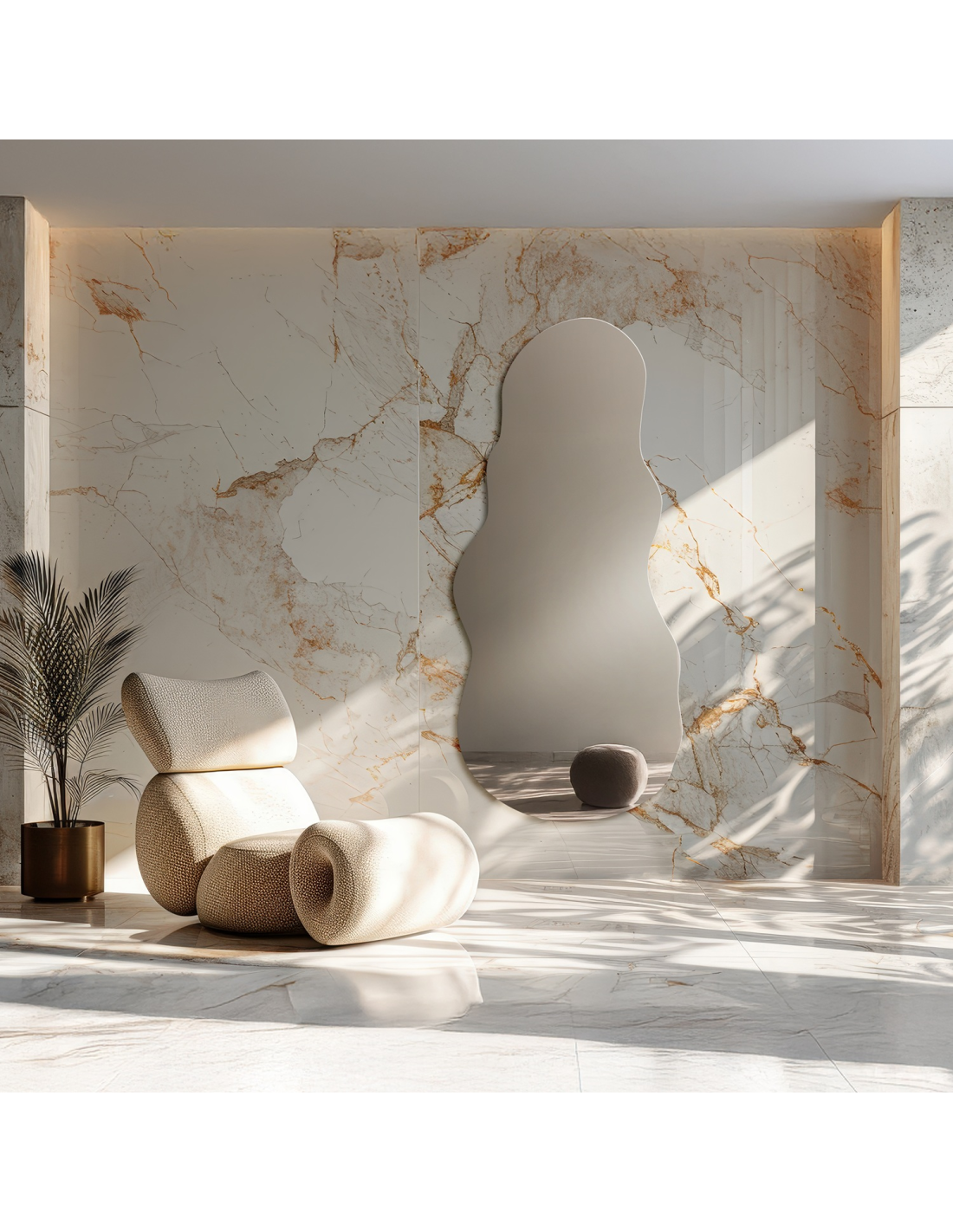 Ova elegantna zrcalna ploča dodaje glamur i luksuz svakoj prostoriji. Njegova duboka zlatna boja privlači sve poglede, čineći ogledalo središtem pažnje. Zlatna boja simbolizira bogatstvo i prestiž, donoseći profinjenu atmosferu u sobu.