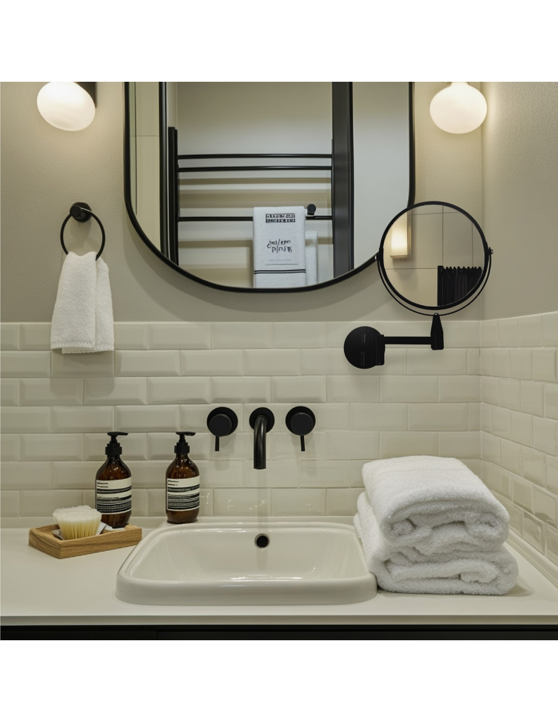 Zidno kozmetičko ogledalo s podesivom ručkom.