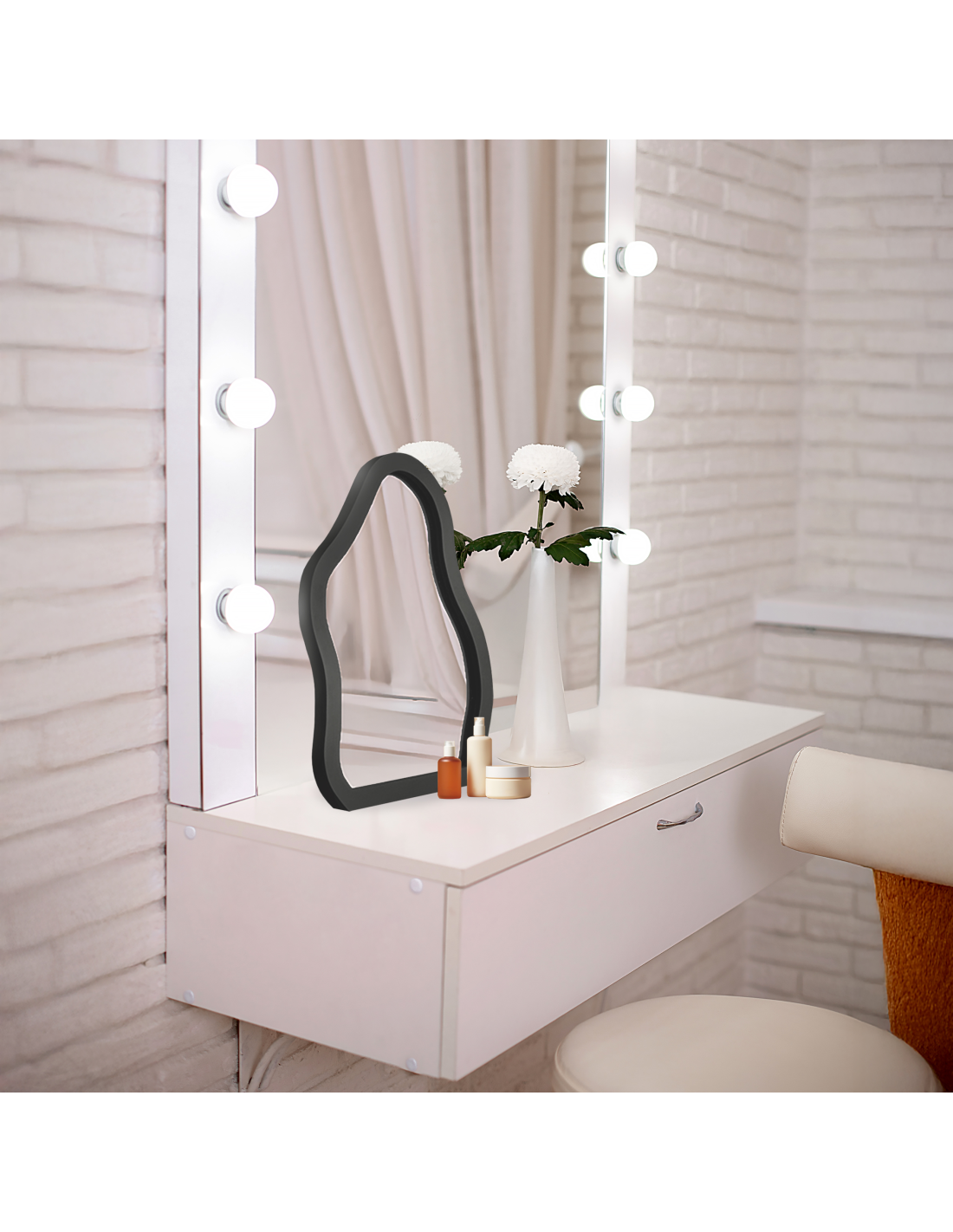 Za profesionalno šminkanje preporučujemo korištenje ogledala sa žaruljama. Kod ogledala bez okvira, kućište je bijele boje. Kod ogledala s okvirom, boja kućišta odgovara boji okvira. Prilikom odabira rasvjete za svakodnevno šminkanje nije moguće odabrati drugo kućište. Kod ogledala namijenjenih za svakodnevno šminkanje, rasvjeta se nalazi u posebnom kućištu, što znači da ne stvara efekt aureole oko površine ogledala.